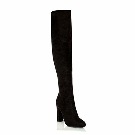 Women’s knee-high boot by Billini in man made suede leather. Featuring a zip fastening on the inner side, almond shaped toe and a chunky block heel. Heel height is 11cm.