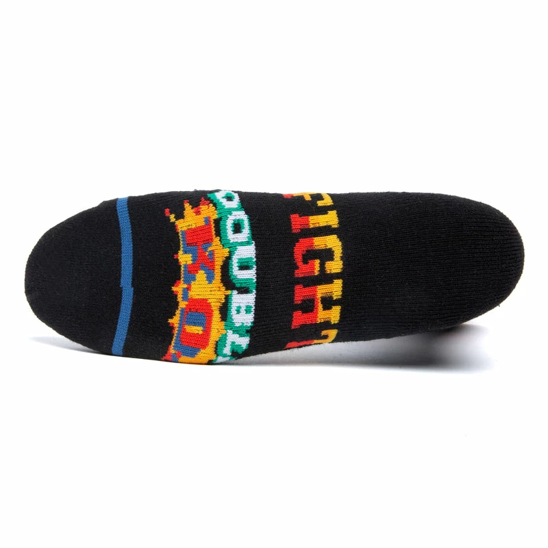 Part of the HUF x Street Fighter Collaboration—celebrating the iconic 16-bit arcade game of the late-80s and 90s—the Street Fighter Graphic Sock features all-over artwork consisting of the game’s retro logos and classic slogans.