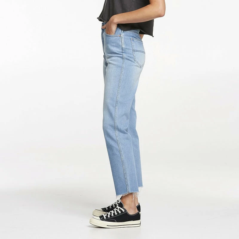 Hi Mom jean has fast become a wardrobe staple thank to it’s anti-fit profile which makes it super easy to wear. It features a high rise, vintage straight top block and a straight leg that falls to a slightly tapered hem for an authentic vintage look. It is crafted in a high-quality, comfort stretch BCI denim that looks like an authentic rigid jean but has hidden comfort. Made up of a salt and pepper mid-blue wash it has a sun-faded vintage appearance for a natural worn-in washed look and is finished with a raw, destroyed hem.