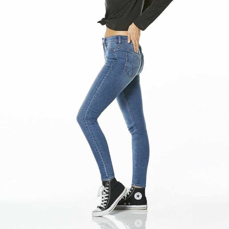 One of our best sellers, the Mid Vegas is a super skinny mid-rise jean in a clean dark blue wash.