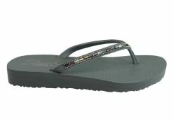 Add some glittering style to your warm weather look with the SKECHERS Cali Meditation – Desert Princess sandal. Soft fabric upper in a flip flop casual comfort thong sandal with stitching accents, sparkling gem detail and Yoga Foam footbed.